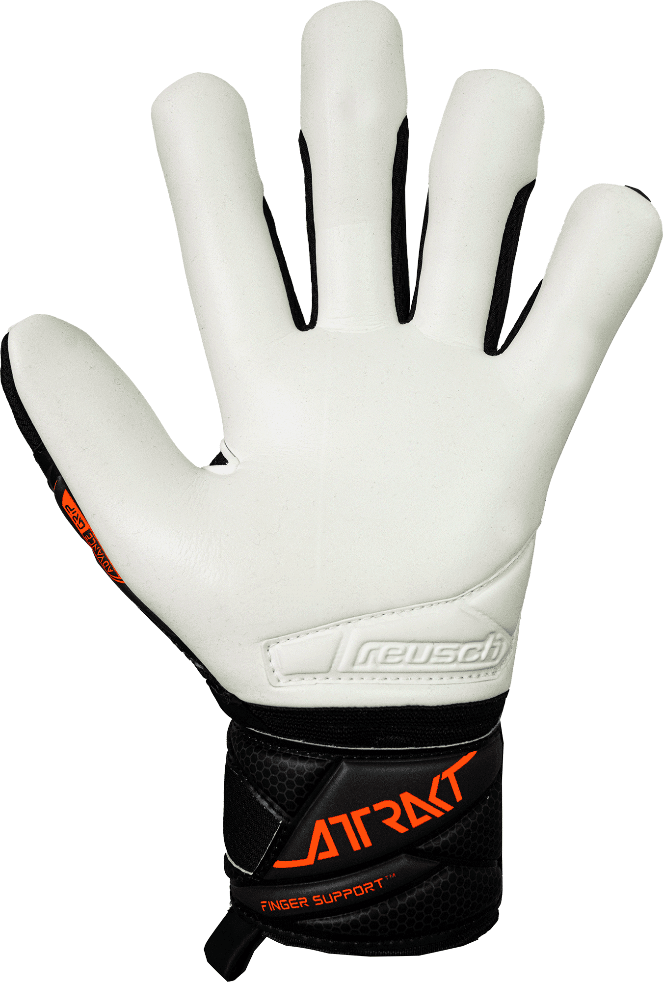 The Attrakt Advance Finger Support is designed for ambitious goalkeepers looking for a balanced glove with reliable protection. Featuring the new Reusch Grip Advance latex for reliable grip and built-in Finger Support™ spines, this model ensures stability on all five fingers. The Evolution Negative Cut provides a snug fit, while DuraGuard reinforcement enhances palm durability. AirVentSystem and Thumbflex complete a glove built for comfort and performance.Material Composition